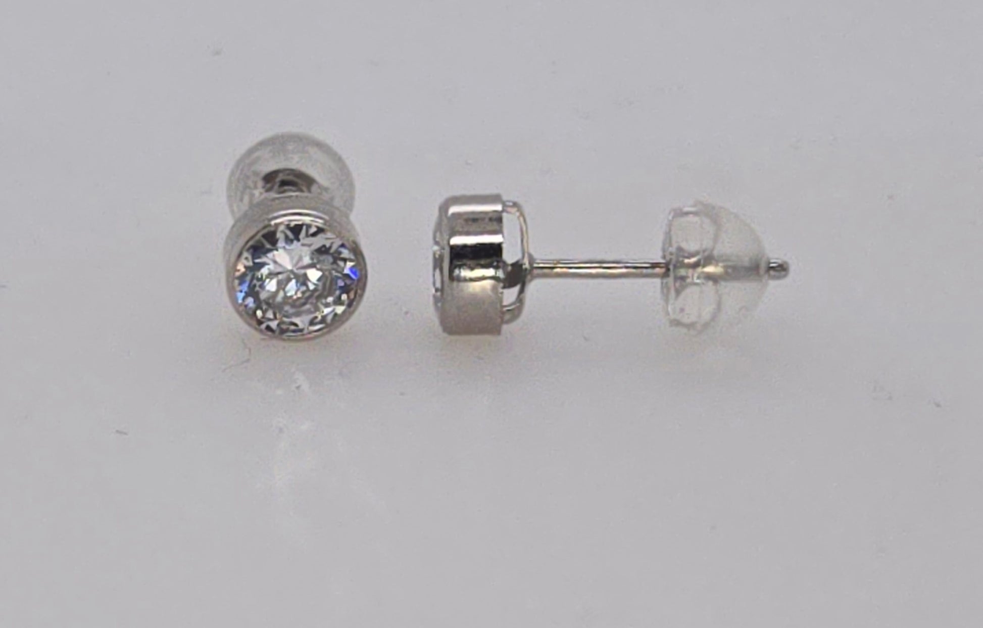 9CT WHITE GOLD BEZEL SET 5MM ROUND CUBIC ZIRCONIA STUD EARRINGS.