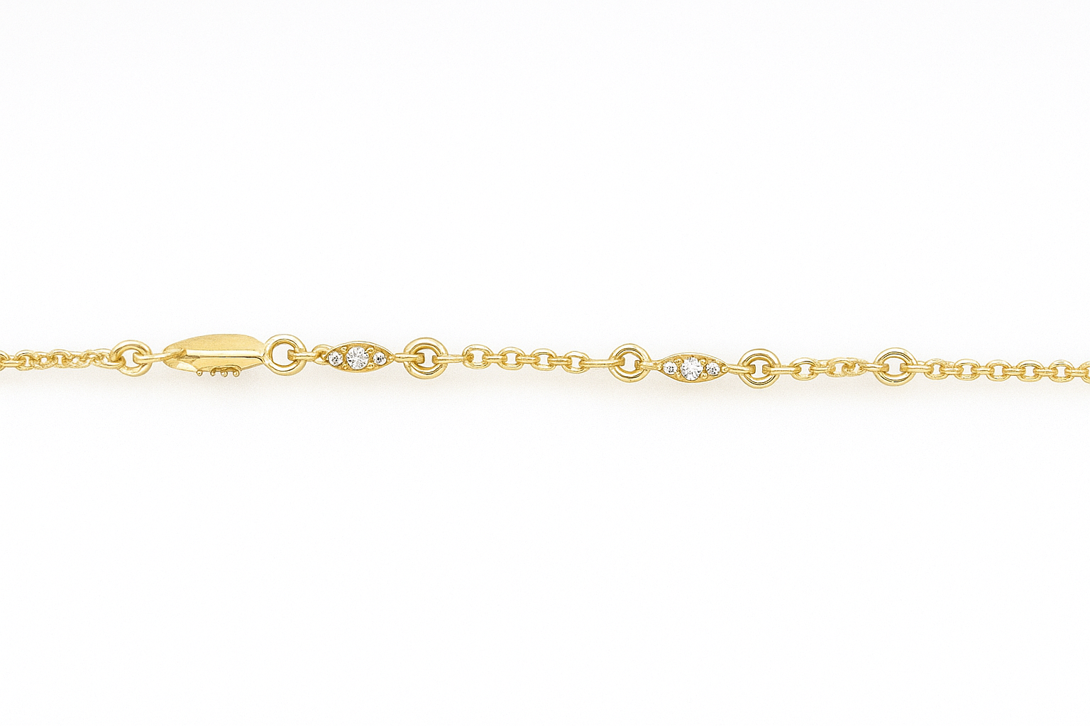 9CT YELLOW GOLD 16-18CM IMPORTED 7 5X1.8MM PAVE SET CUBIC ZIRCONIA MARQUISE SHAPE CHARMS BRACELET.