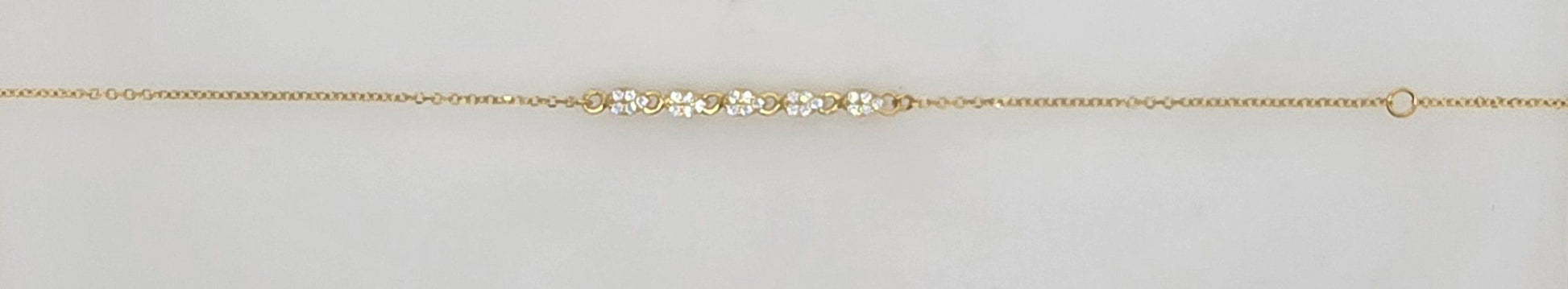 9CT YELLOW GOLD 16-18CM IMPORTED CUBIC ZIRCONIA 5 X TEAR DROP CHARM BRACELET.