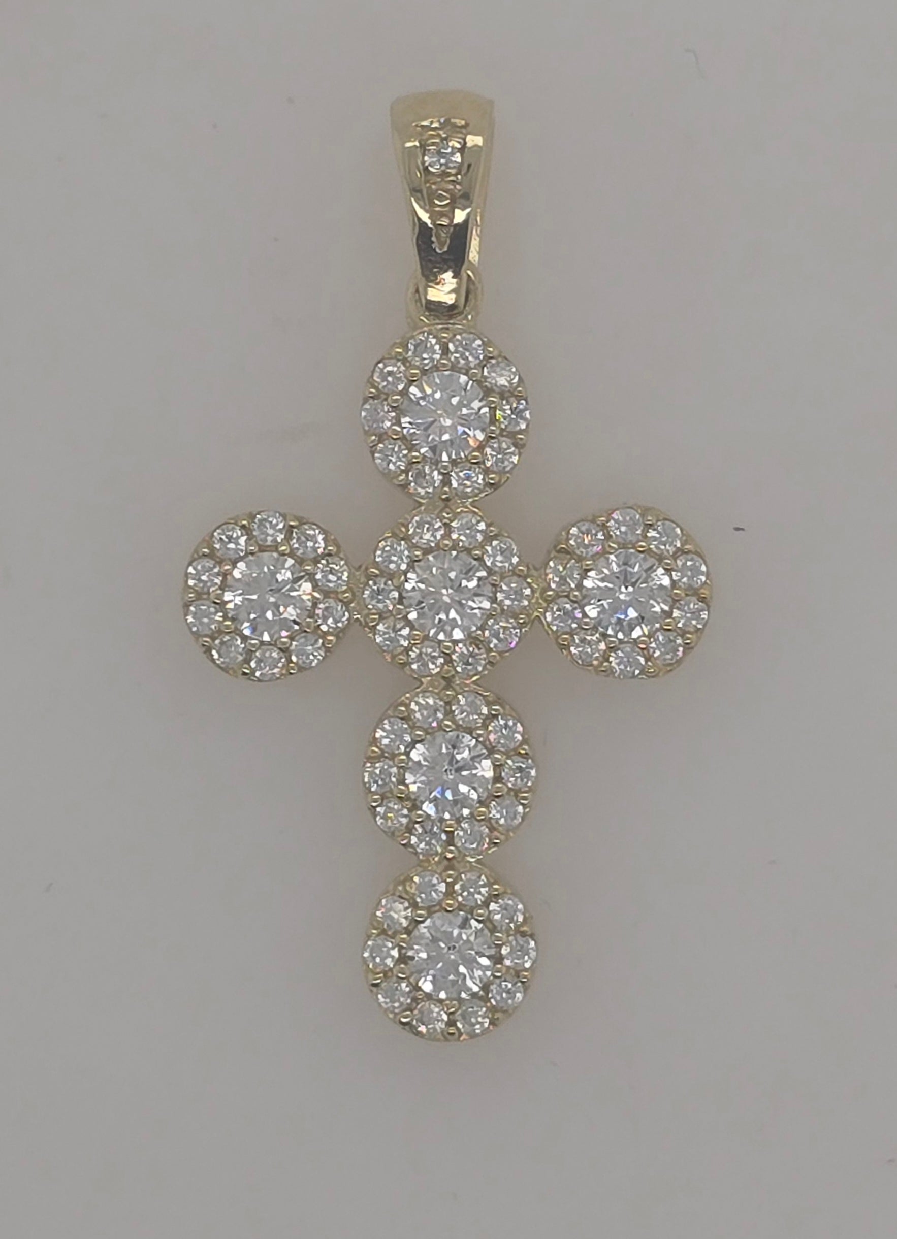 9CT YELLOW GOLD CLAW SET CLUSTER CUBIC ZIRCONIA 20 X 15MM CROSS PENDANT