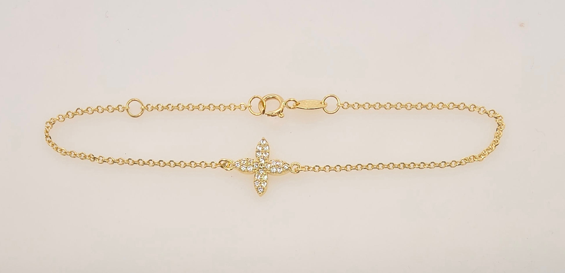 9CT YELLOW GOLD CUBIC ZIRCONIA 11MM PAVE SET CLOVER BRACELET.