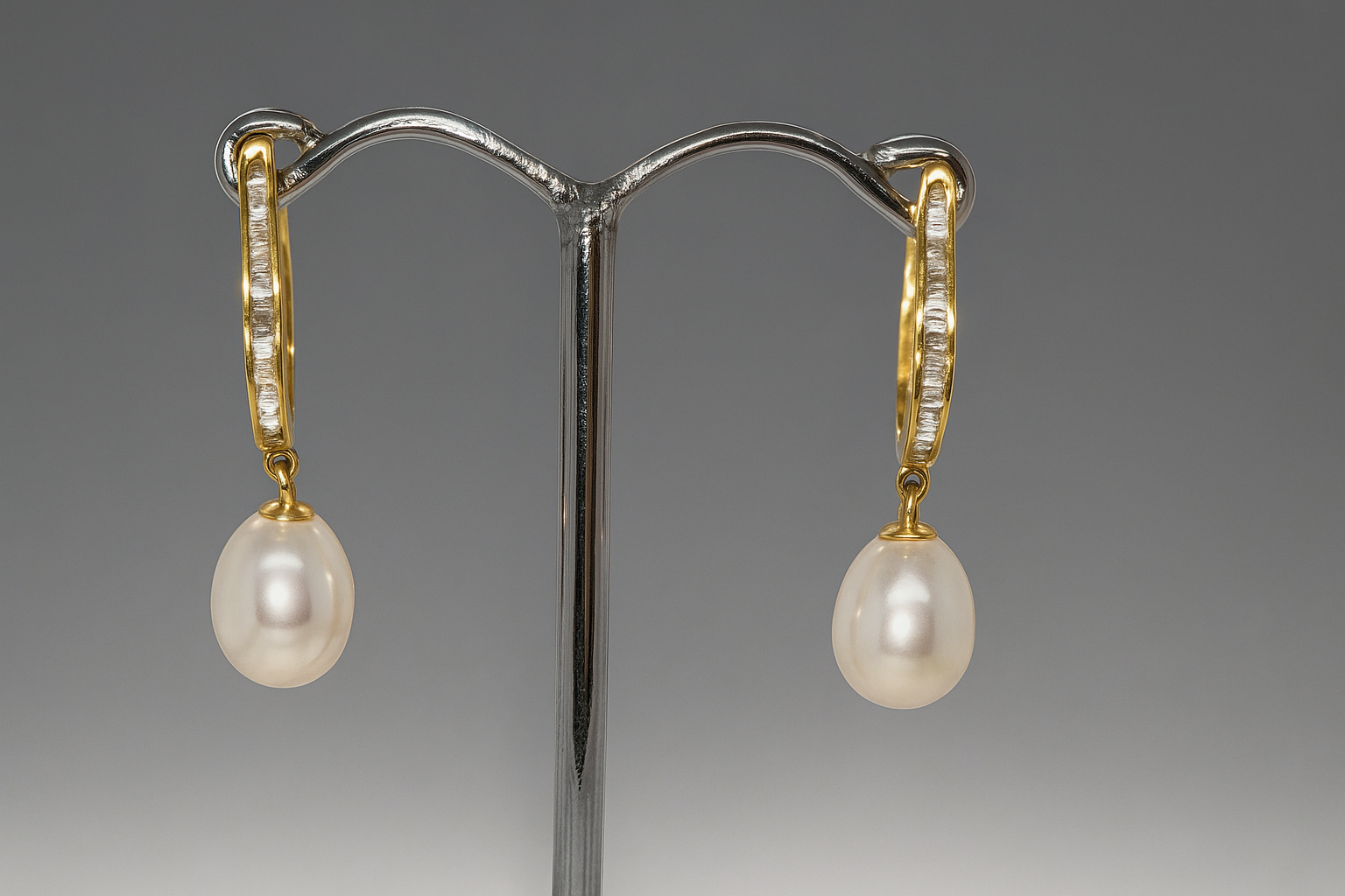 Elevate your wardrobe with these 9CT YELLOW GOLD FRESHWATER PEARL AND DIAMOND U SHAPE DROP EARRINGS. Beautifully crafted with freshwater pearls, these earrings exude luxury and elegance. The U shape design adds a unique touch, while the 0.20CT total diamond weight adds a subtle touch of sparkle. A must-have for any sophisticated and exclusive fashionista.