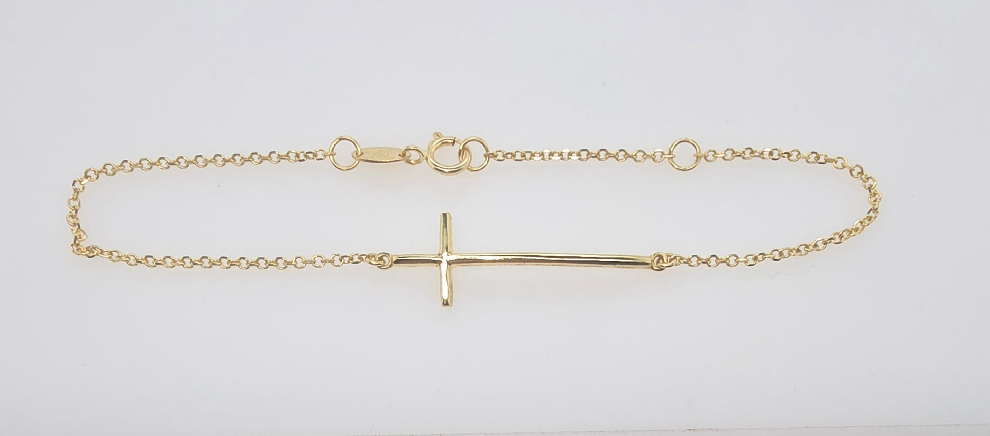 9CT YELLOW GOLD IMPORTED 16-18CM CROSS BRACELET.
