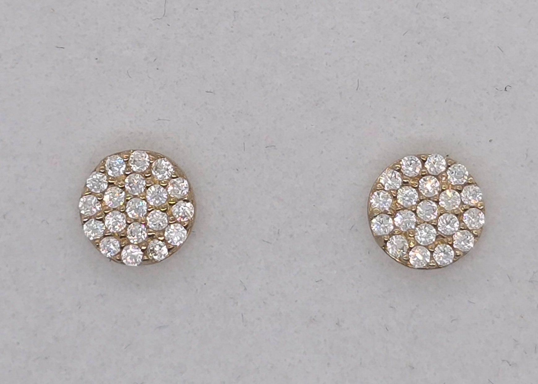 9CT YELLOW GOLD IMPORTED 6MM CUBIC ZIRCONIA PAVE CIRCLE STUD EARRINGS.