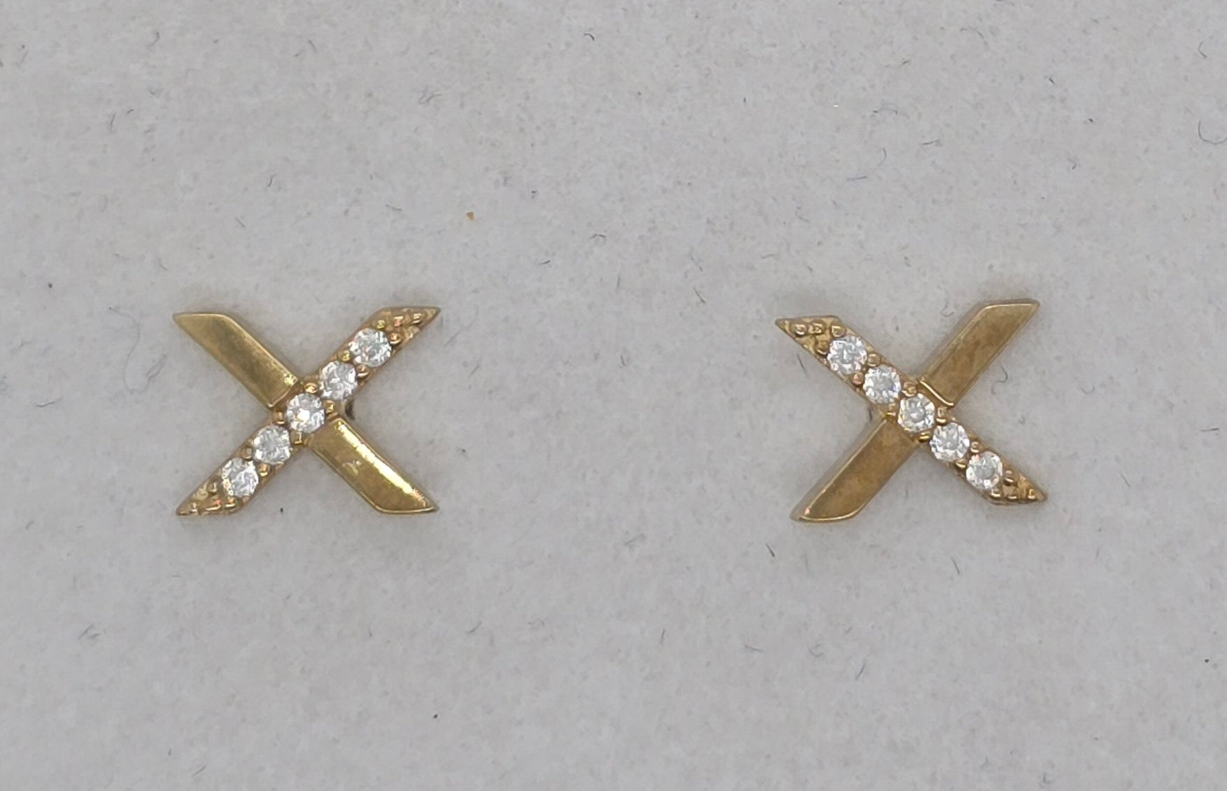 9CT YELLOW GOLD IMPORTED CUBIC ZIRCONIA 7MM X 5MM FANCY X EARRINGS.