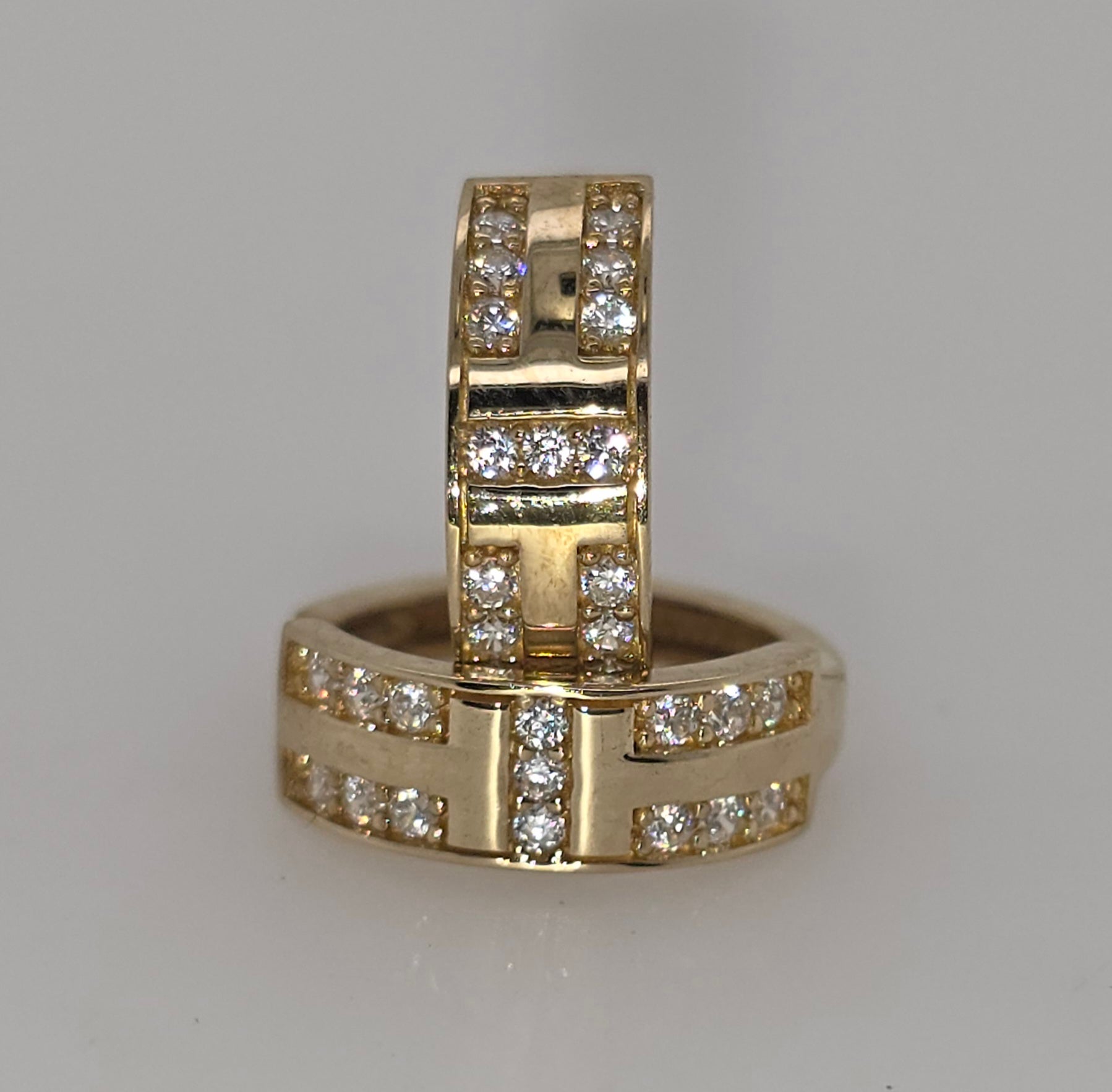 9CT YELLOW GOLD IMPORTED CUBIC ZIRCONIA FANCY 12MM HUGGIE EARRINGS.