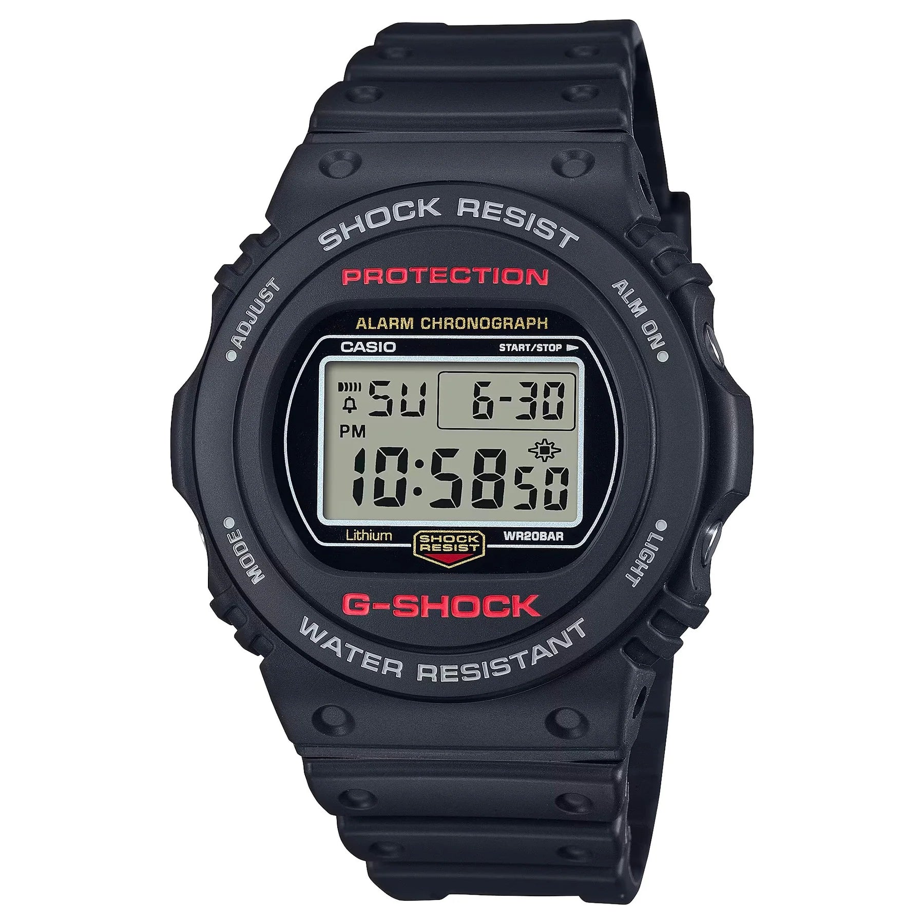Experience resilience and precision with the CASIO G-SHOCK DW5750UE-1D. Featuring a durable black resin case and band, this watch offers reliable 200-meter water resistance, ensuring performance in all conditions. Equipped with an alarm and stopwatch, it combines practical functionality with a sleek, sophisticated design—perfect for those who value both style and toughness in a timepiece.