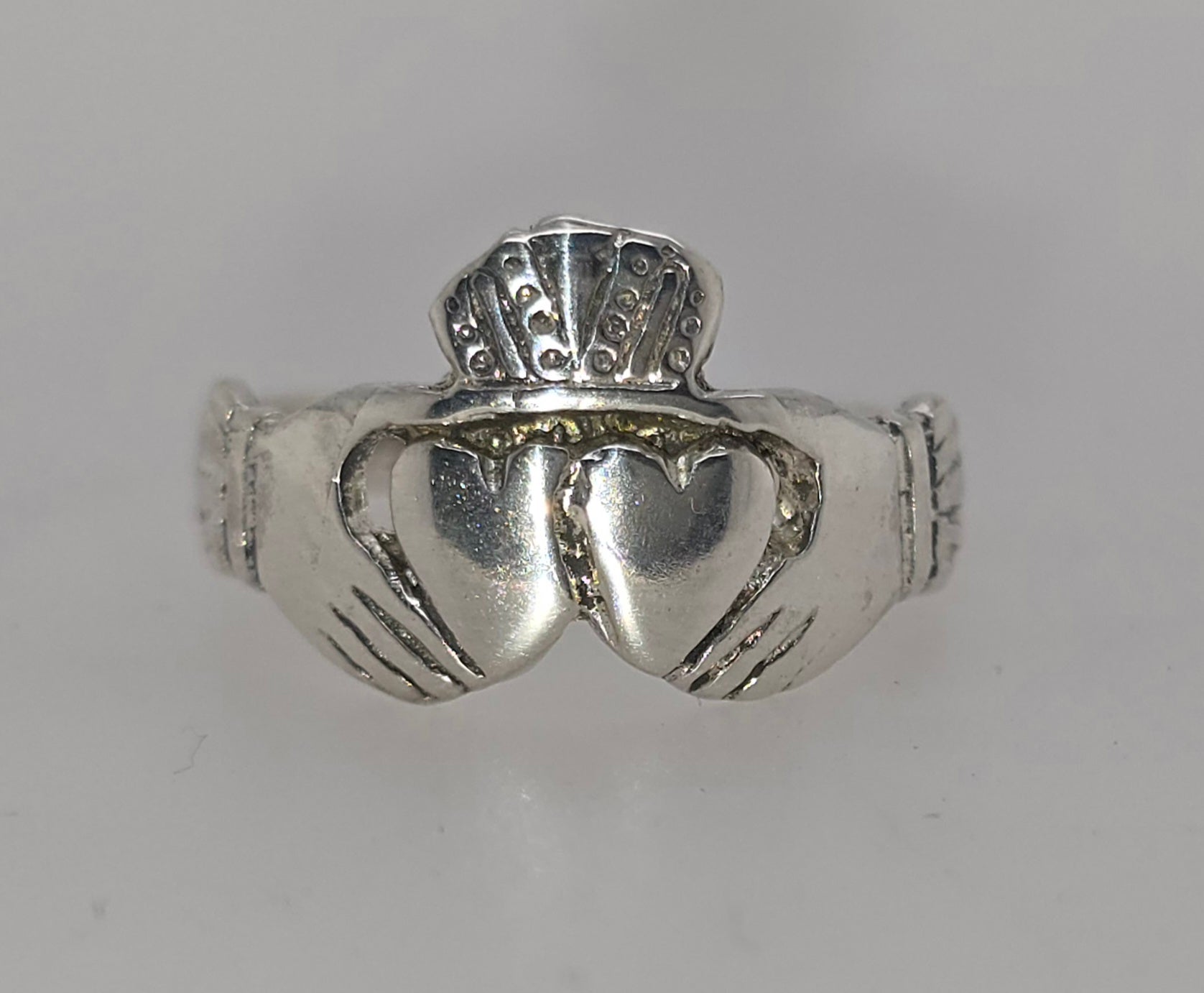 STERLING SILVER CLADDAGH DOUBLE HEART RING.