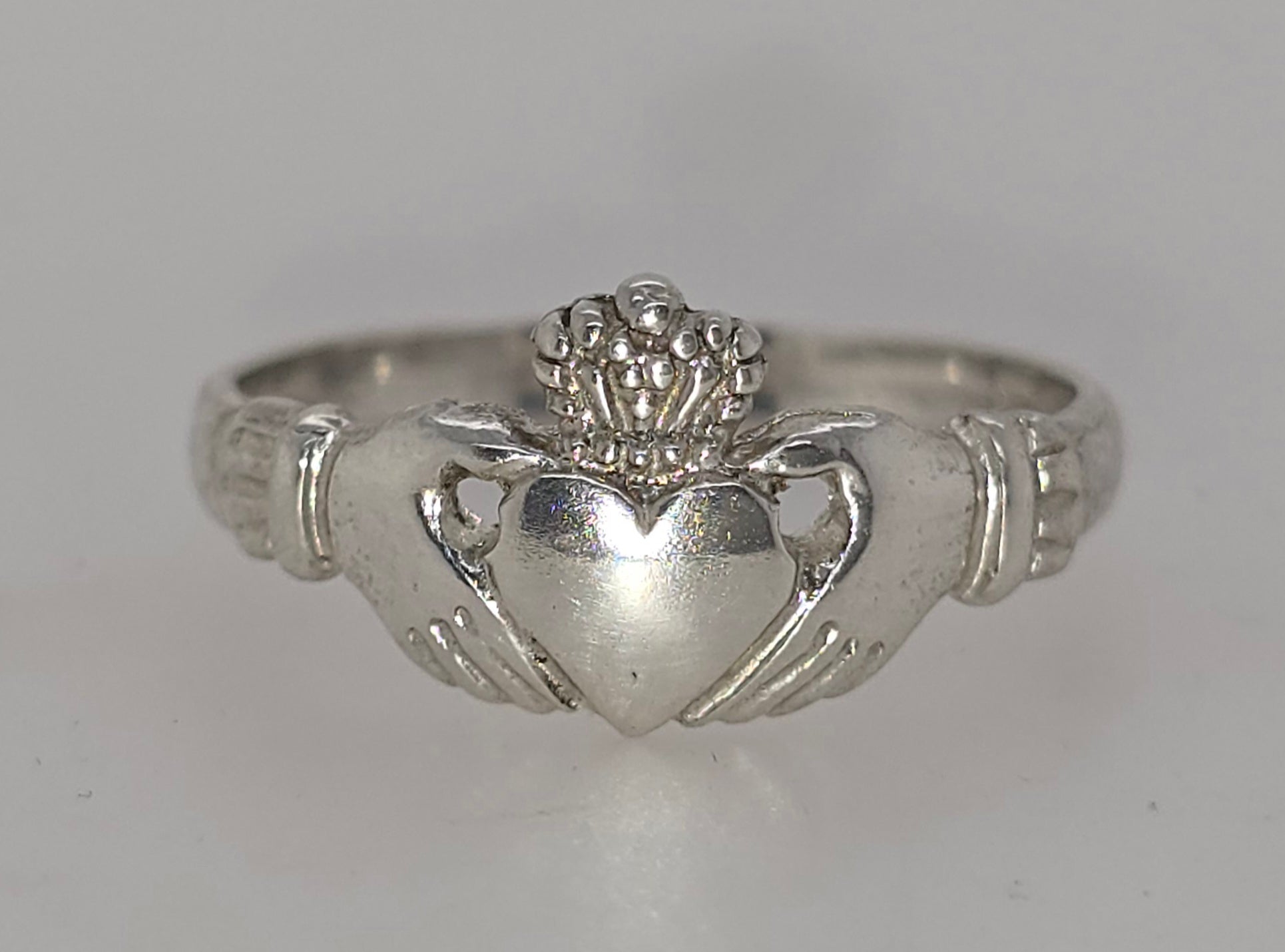This Sterling Silver Claddagh Heart Ring combines timeless elegance with rich symbolism. Expertly crafted in sterling silver, its iconic heart, crown, and hands design represents love, loyalty, and friendship. Perfect for expressing deep connections or as a refined accessory, this ring offers a sophisticated statement that complements both casual and formal styles with understated grace.