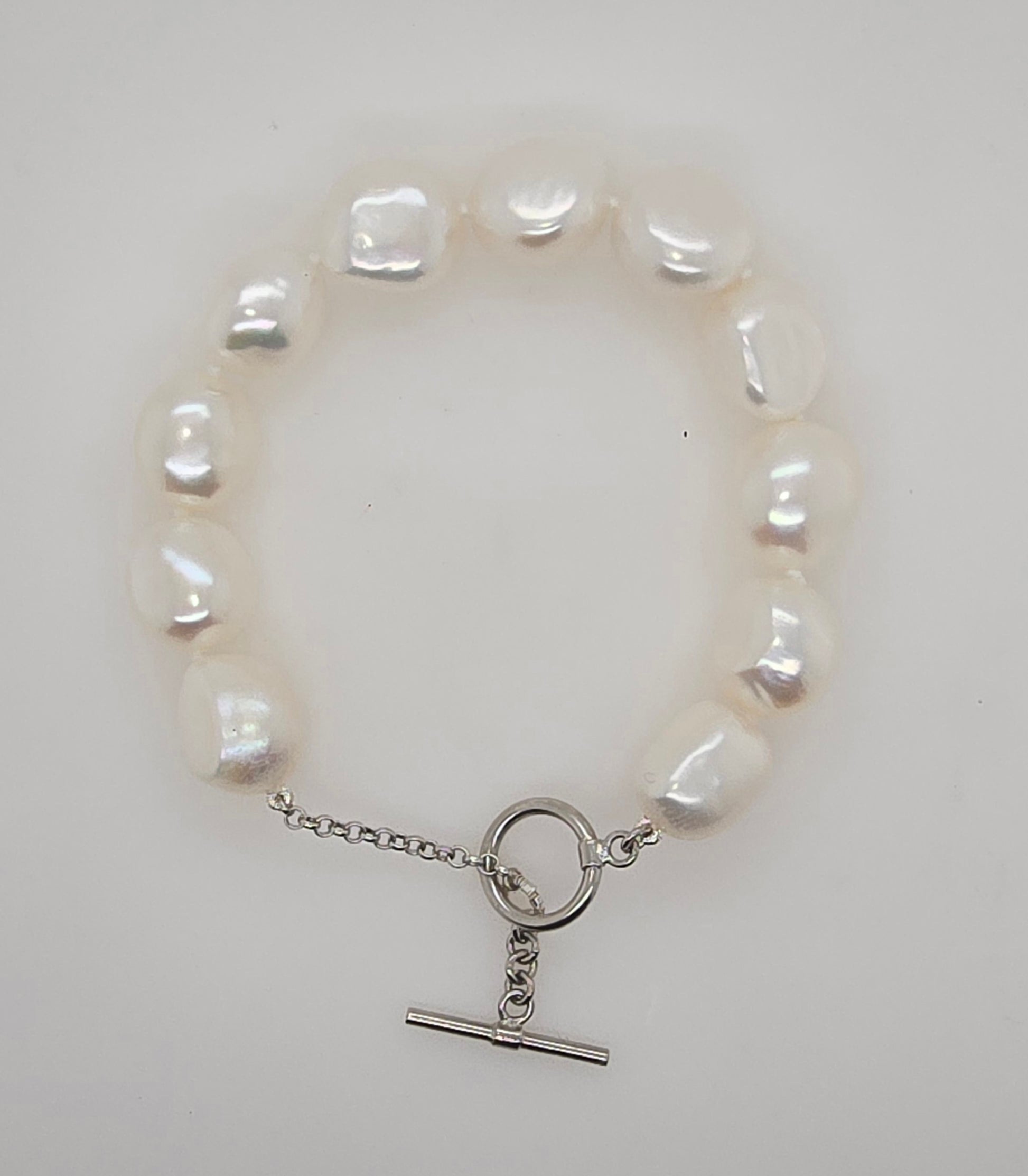 STERLING SILVER WHITE KESKI 10.5-11.5MM BRACELET WITH TOGGLE 19CM